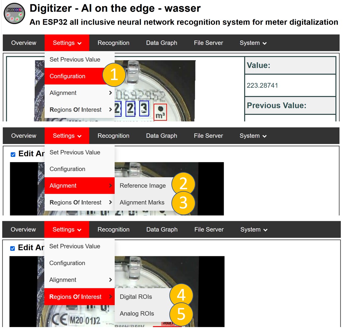 - Define the Digital ROIs to be recognized. (Only required in case your meter has analoge pointers).